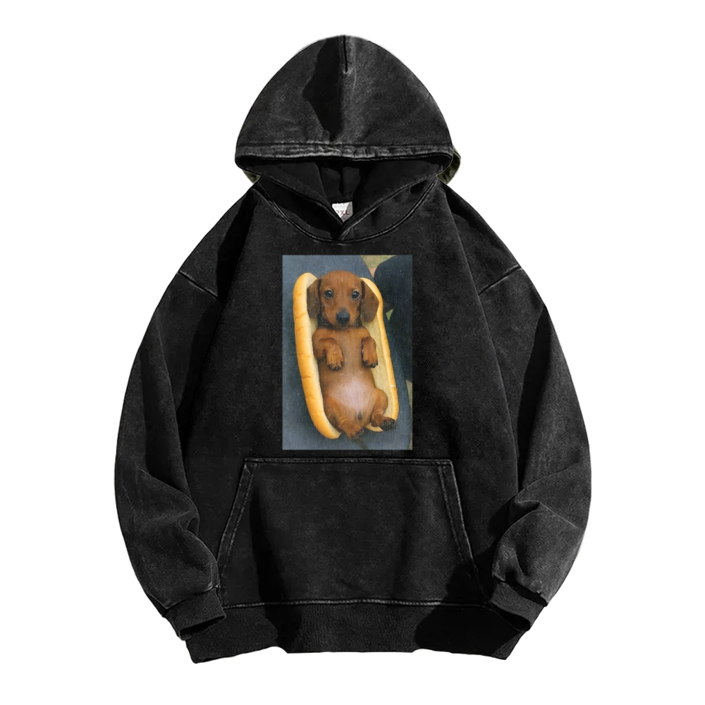 REAL HOT DOG Front And Back Printing Vintage Washed Hoodie