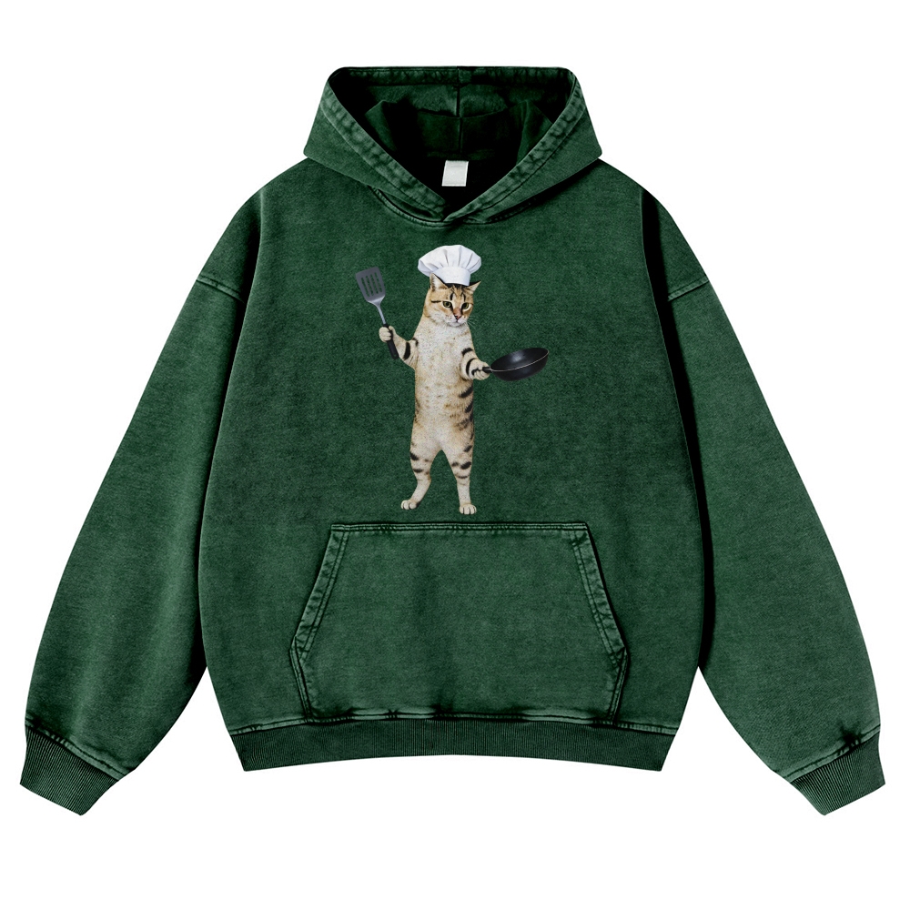 Chef Cat Fun Print Unisex Fit Vintage Washed Hoodie