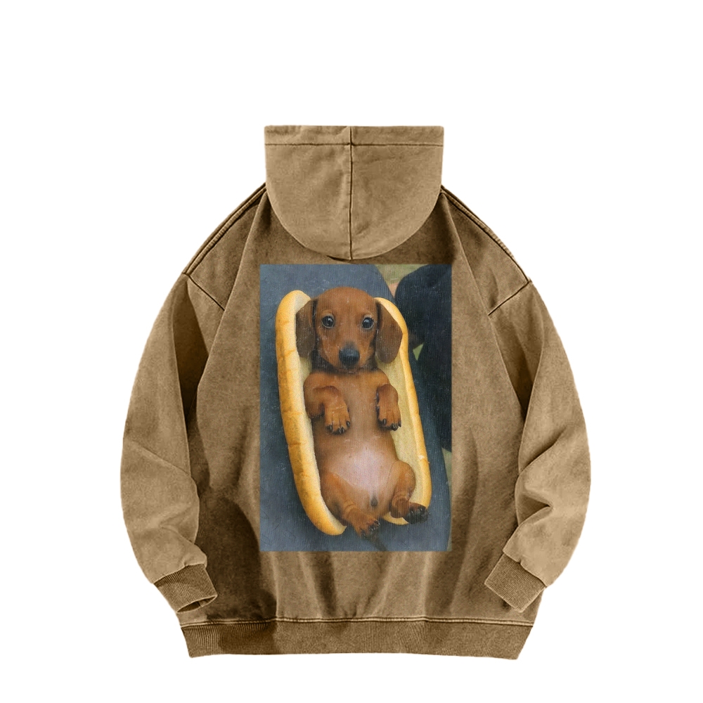 REAL HOT DOG Front And Back Printing Vintage Washed Hoodie