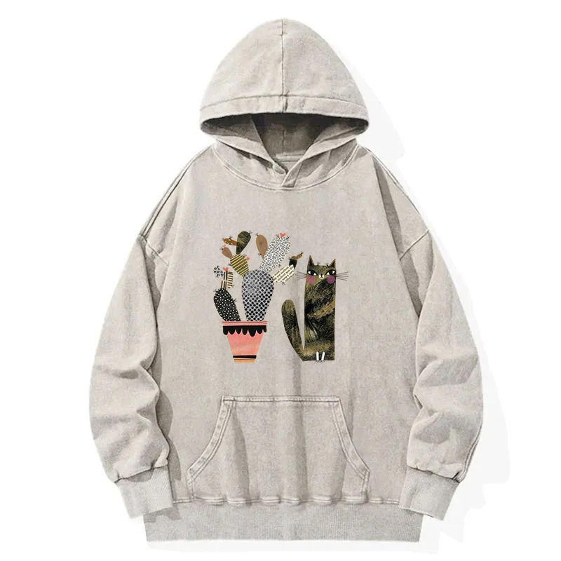 Cactus And Cat Washed Hoodie