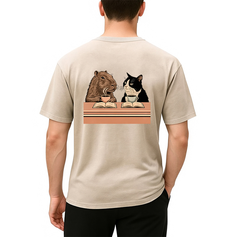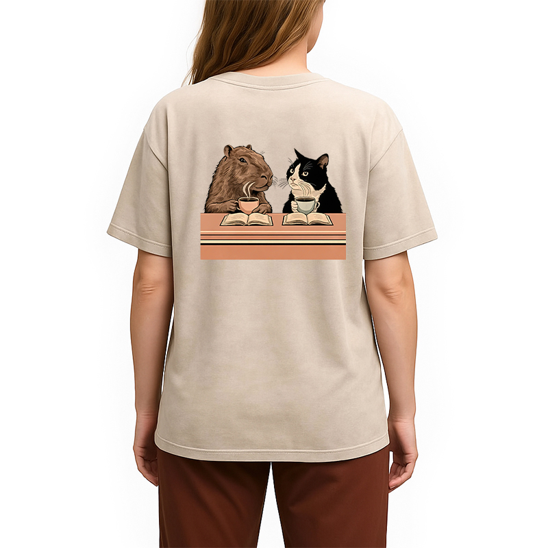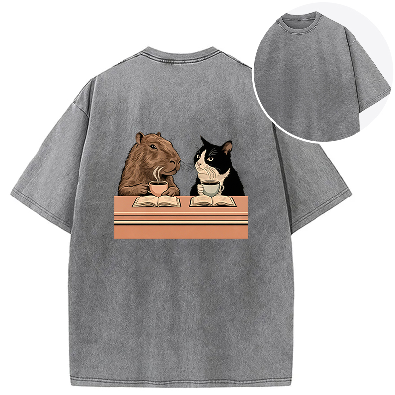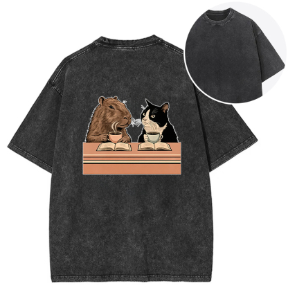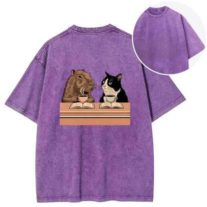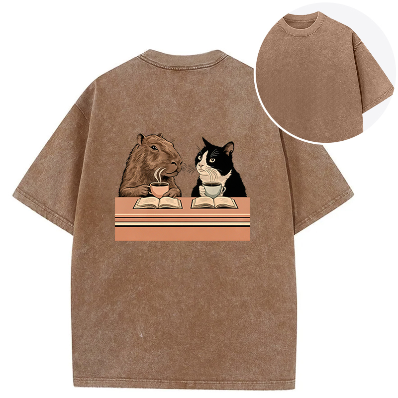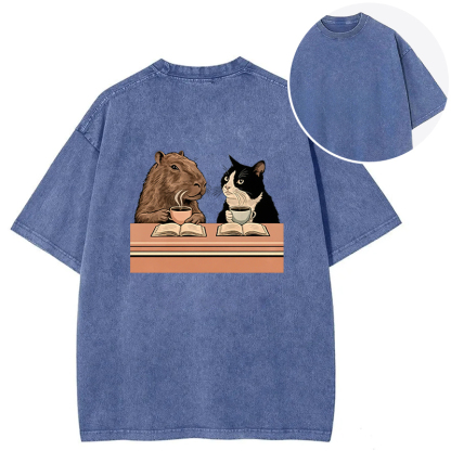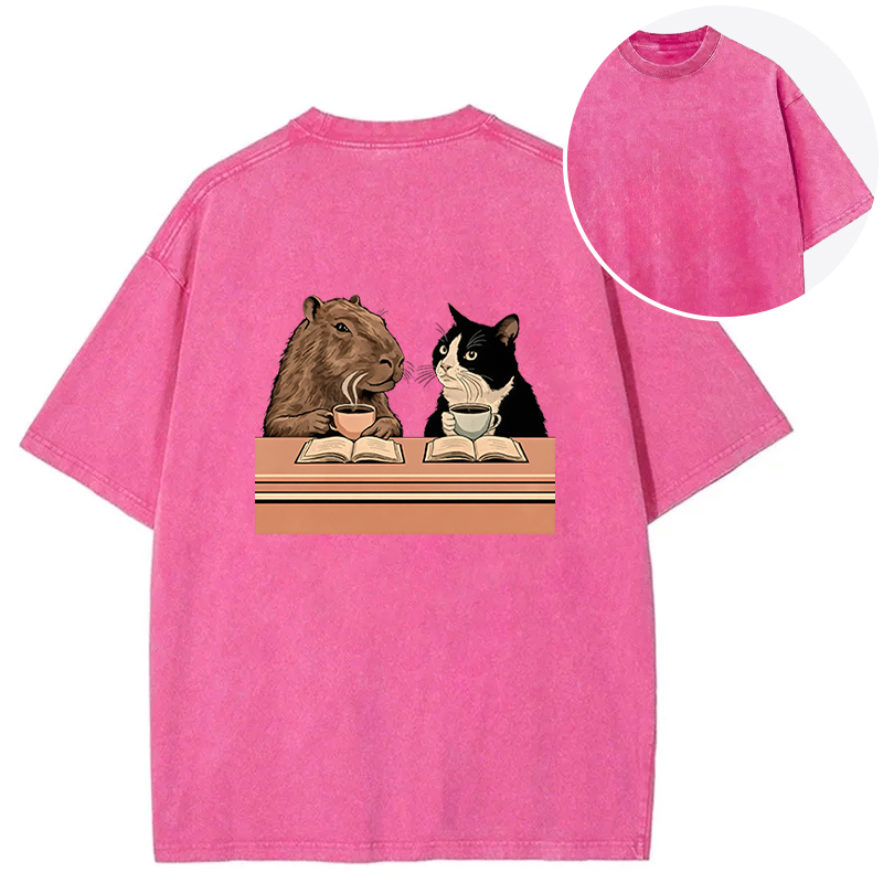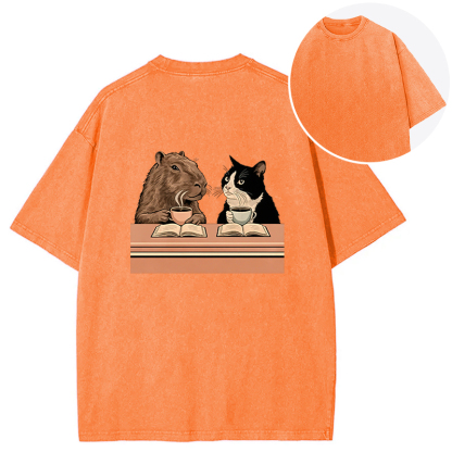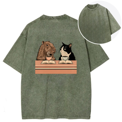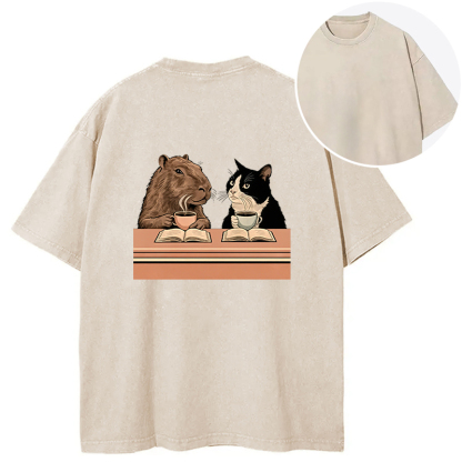 Capybara And Cat Talk Back Washed T-Shirt