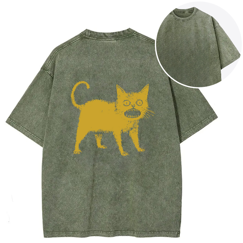 Horrible Japanese Cat Back Washed T-Shirt