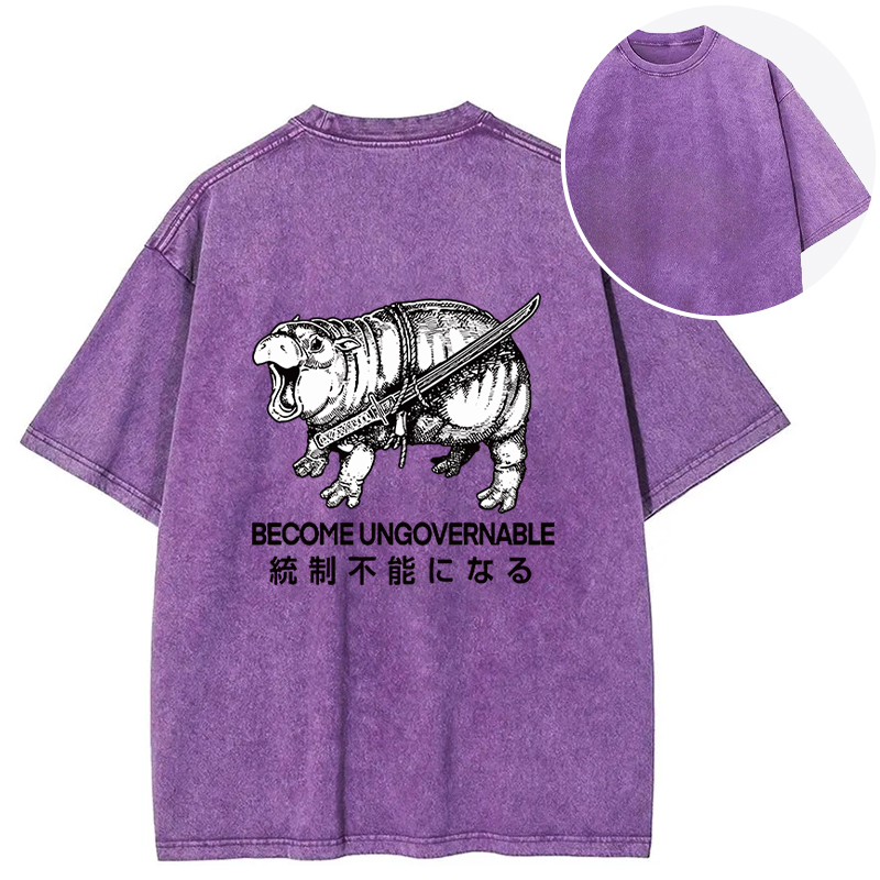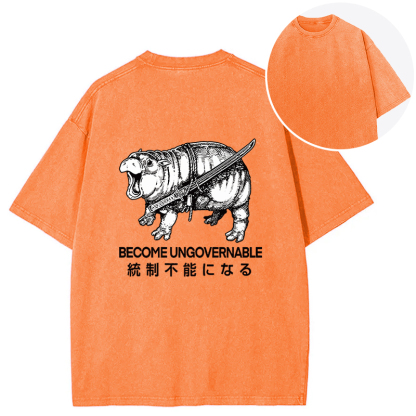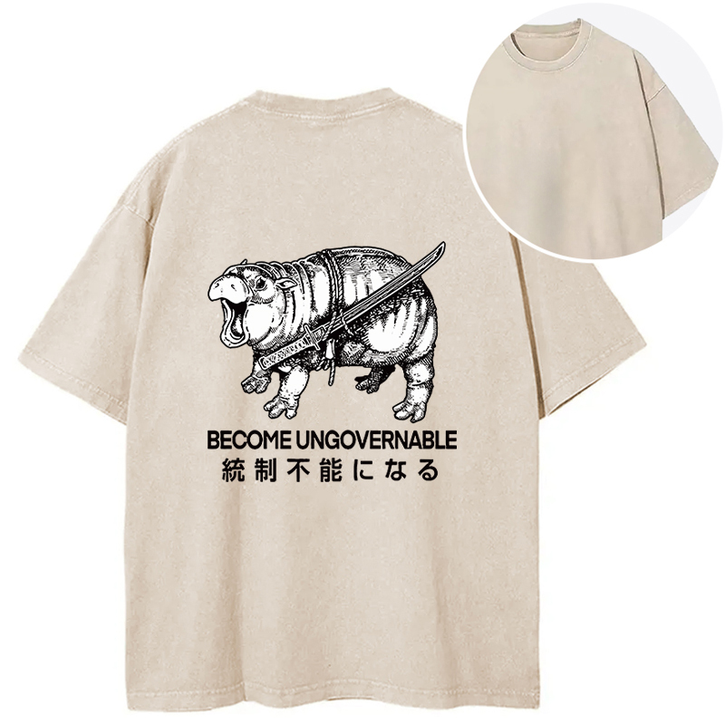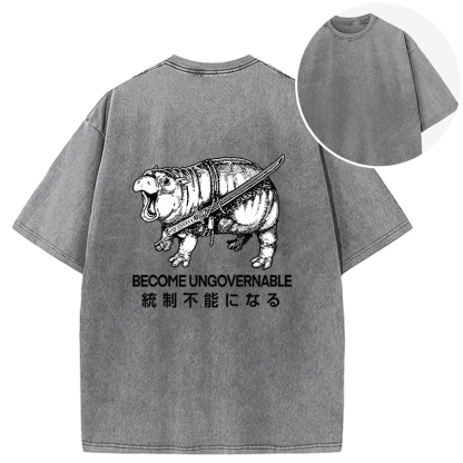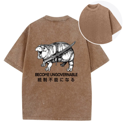Moo Deng Carrying A Samurai Sword Back Washed T-Shirt