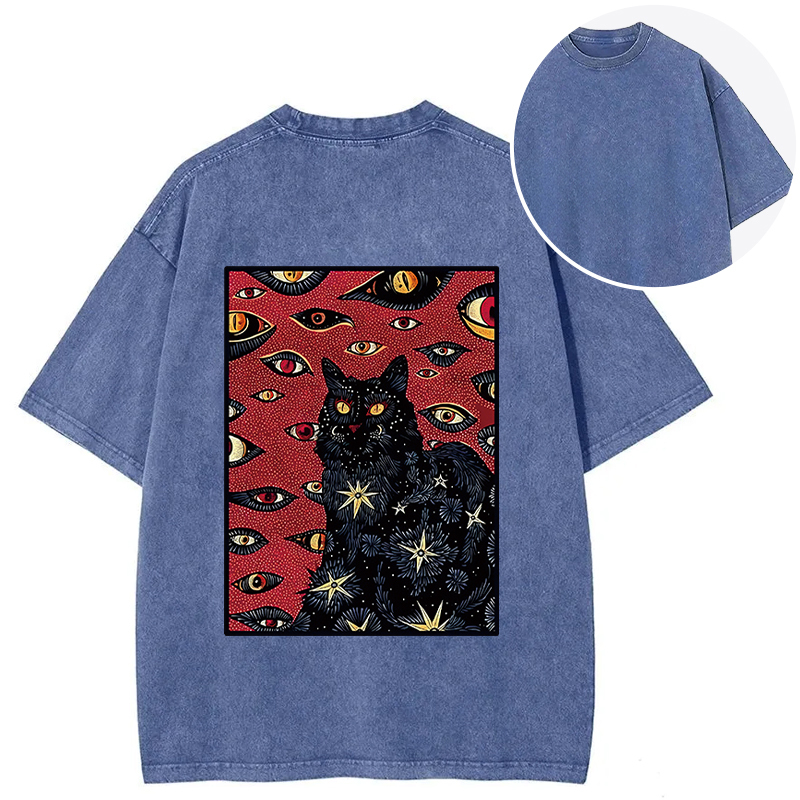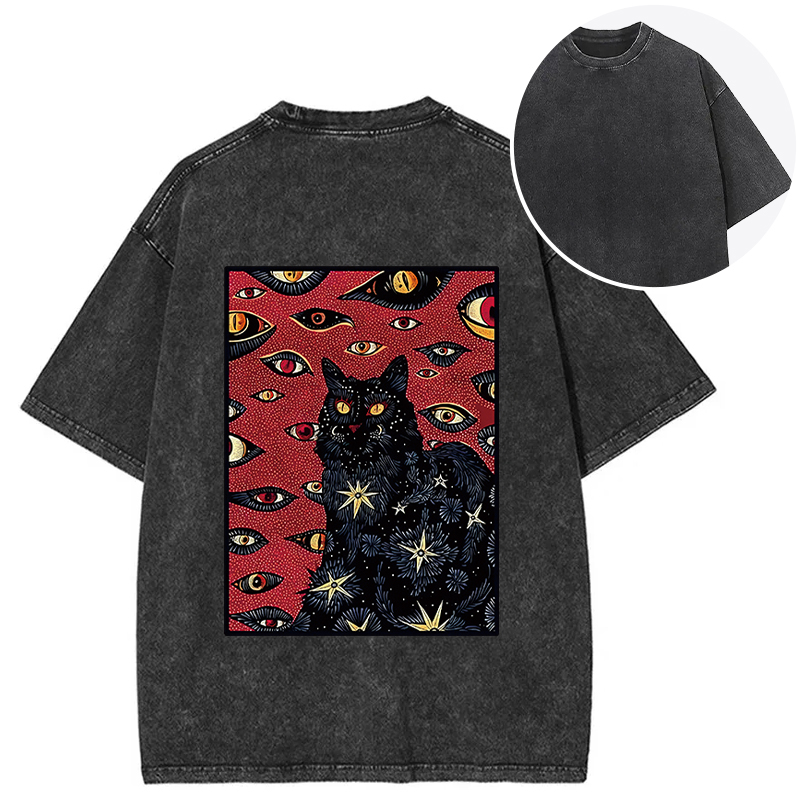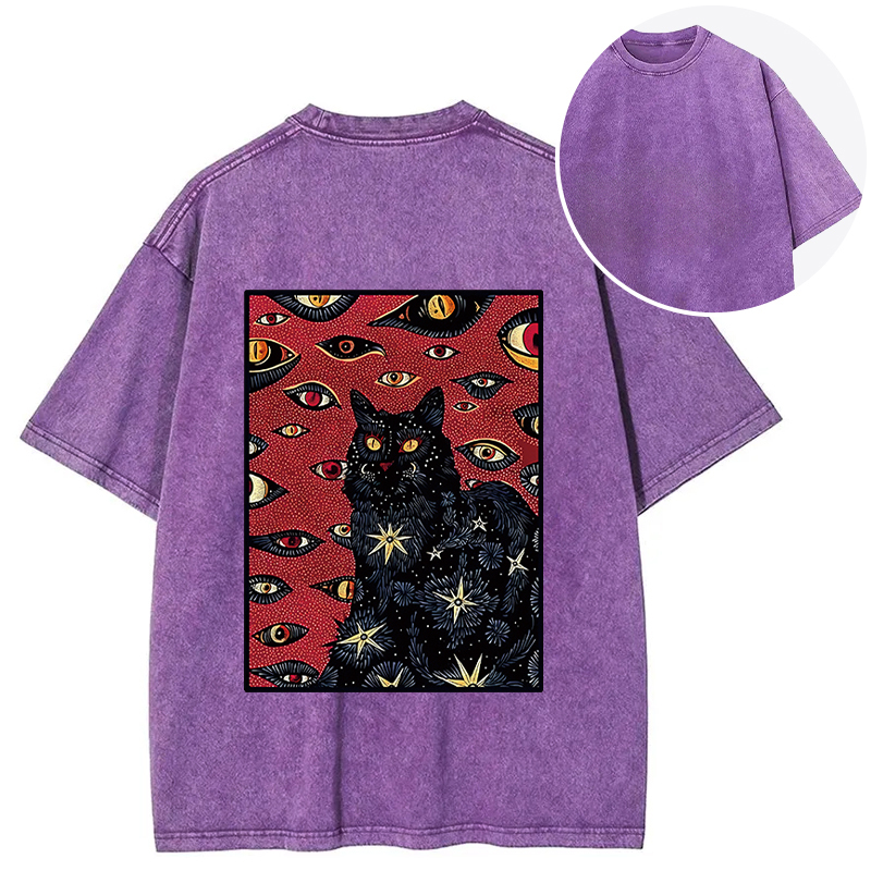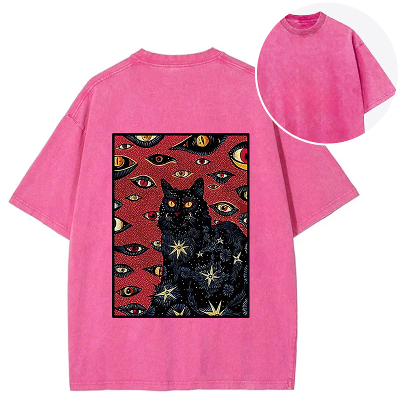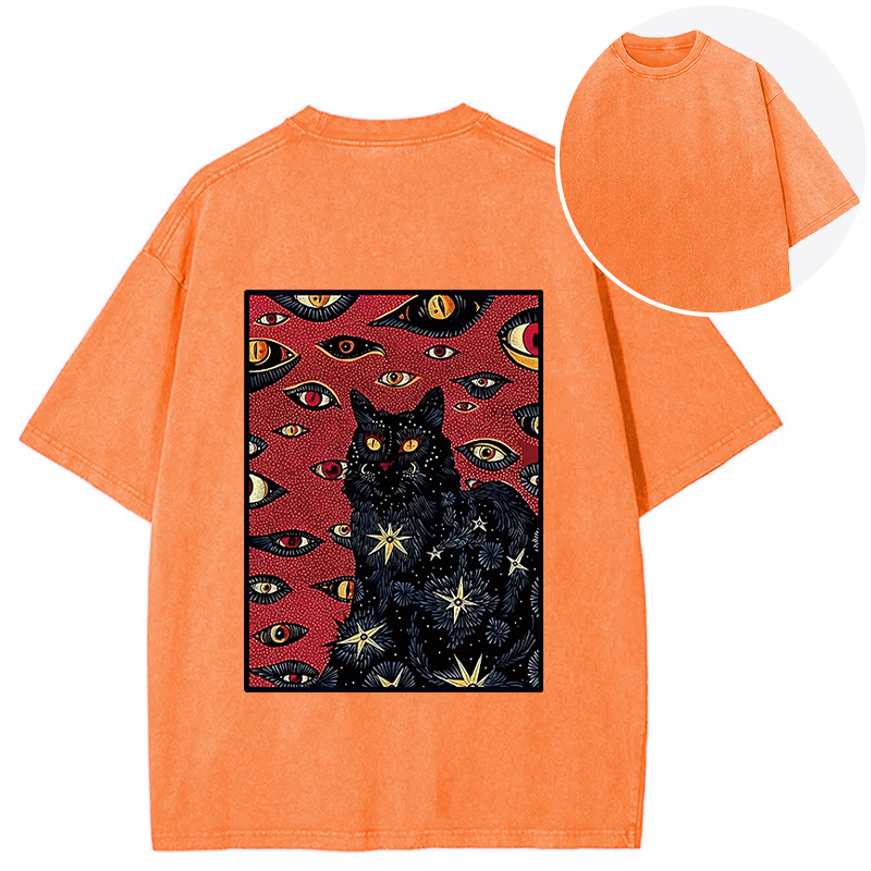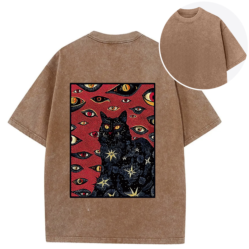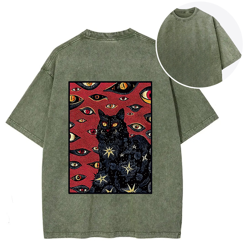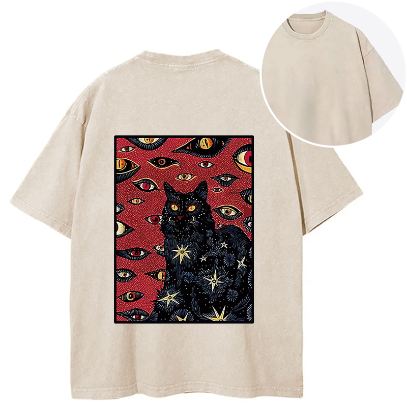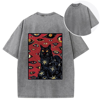 Mysterious Cat Back Washed T-Shirt