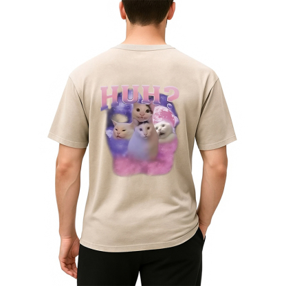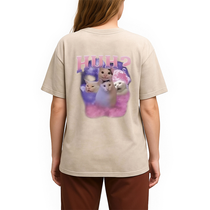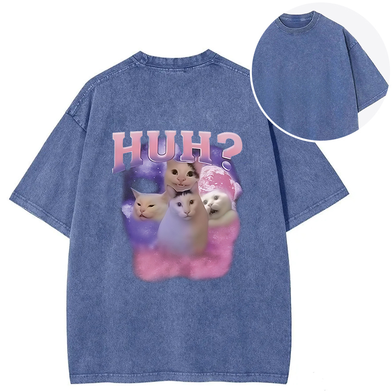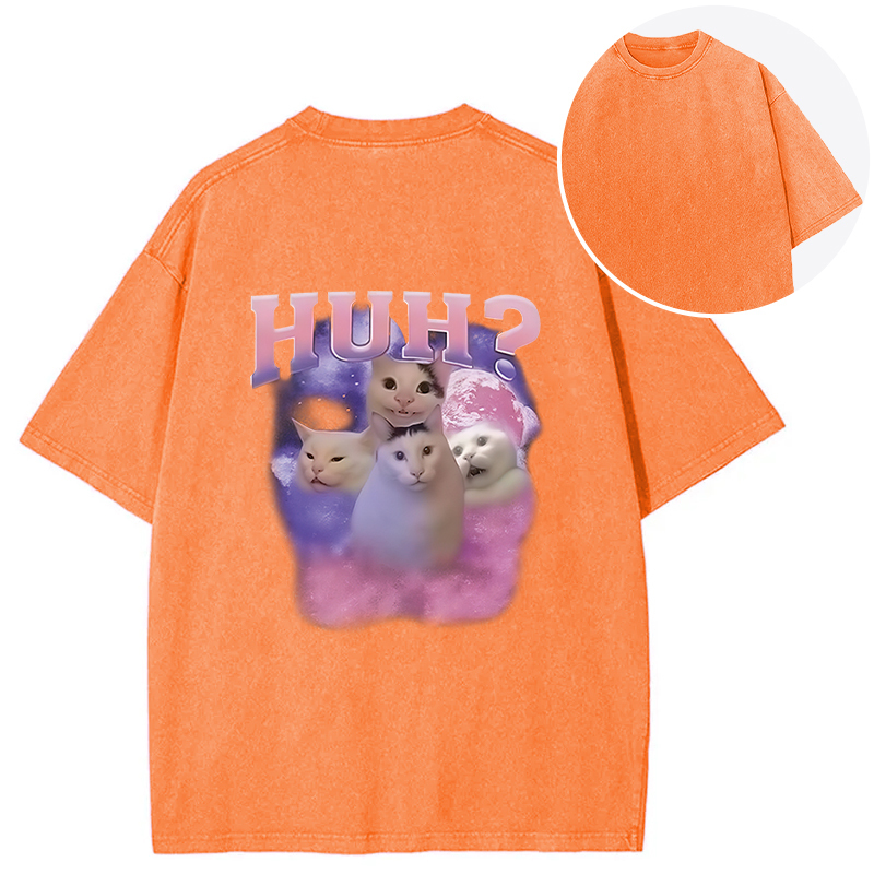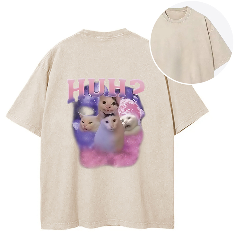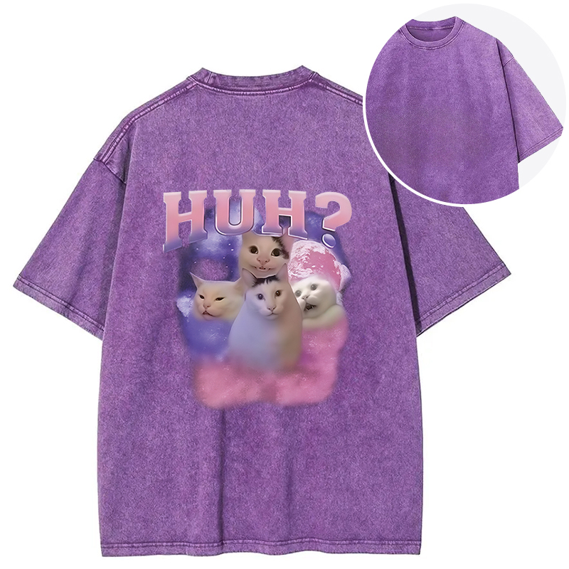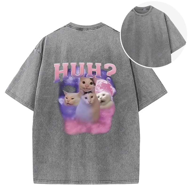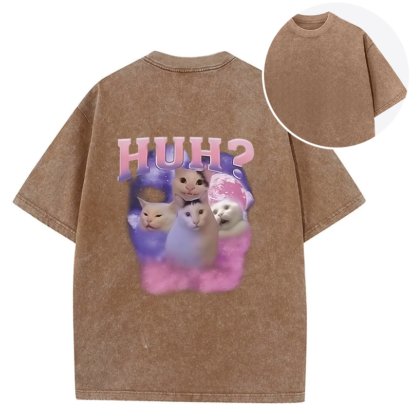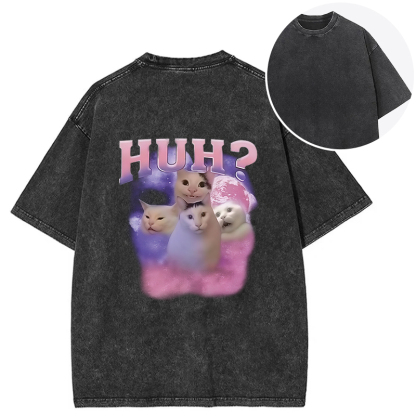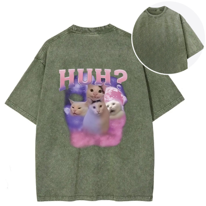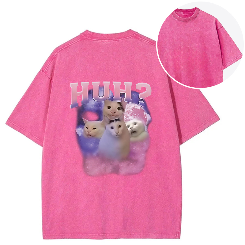 Pink Funny Meme Huh Cat Back Washed T-Shirt