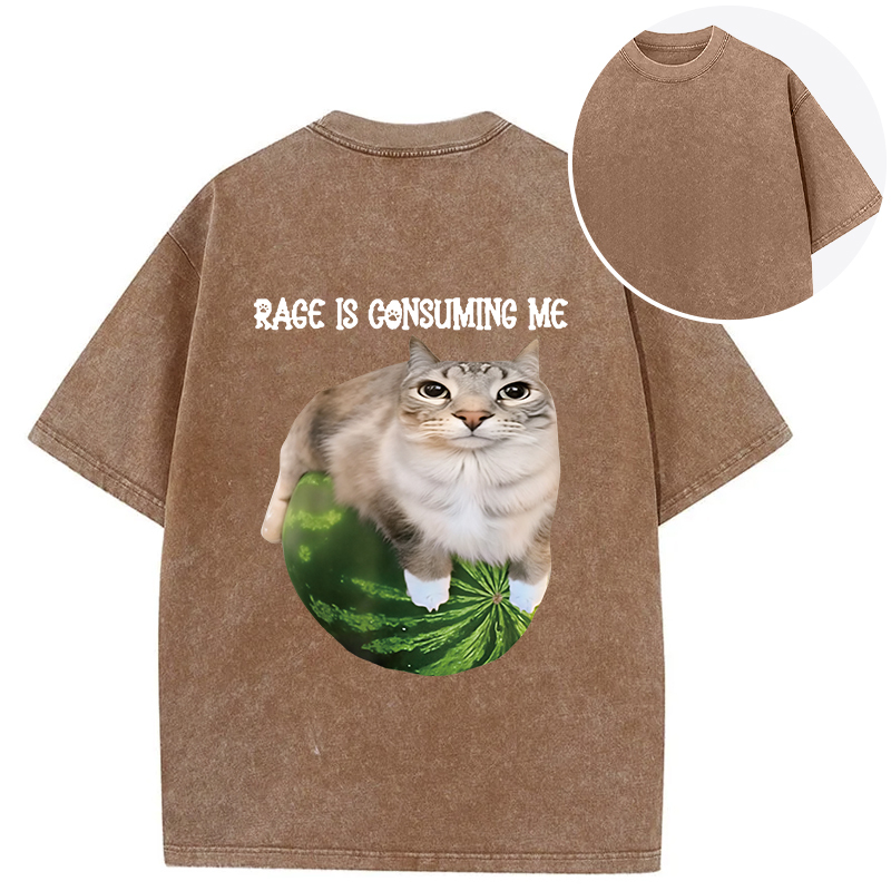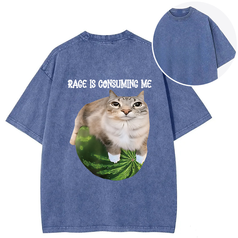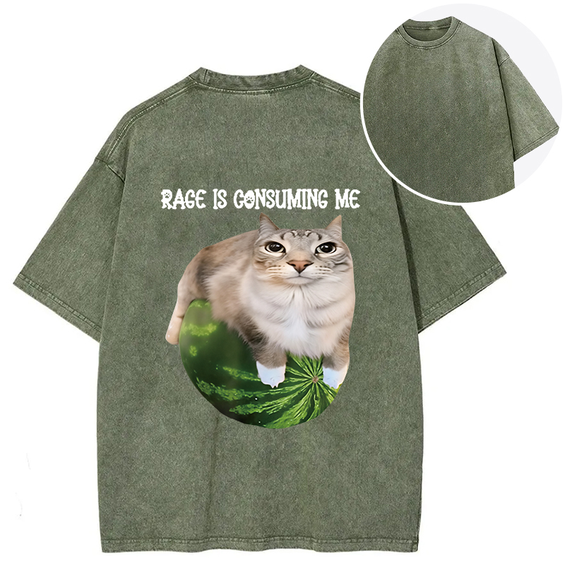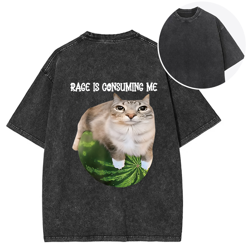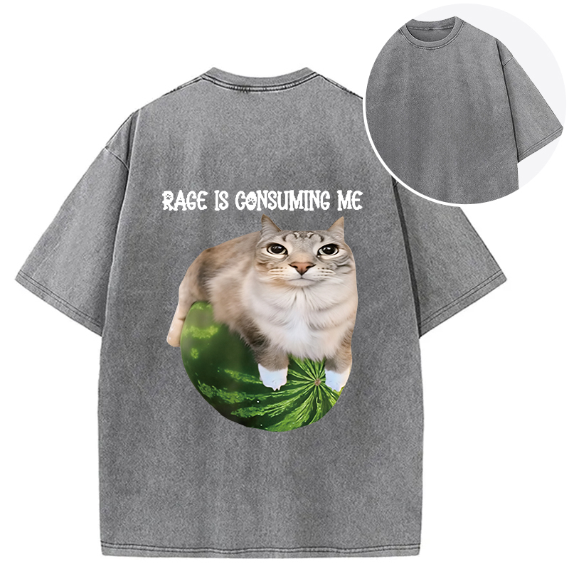 Rage Is Consuming Me Cat Meme Back Washed T-Shirt