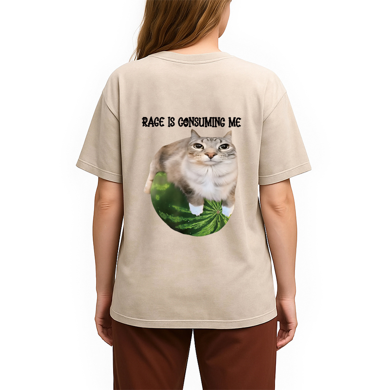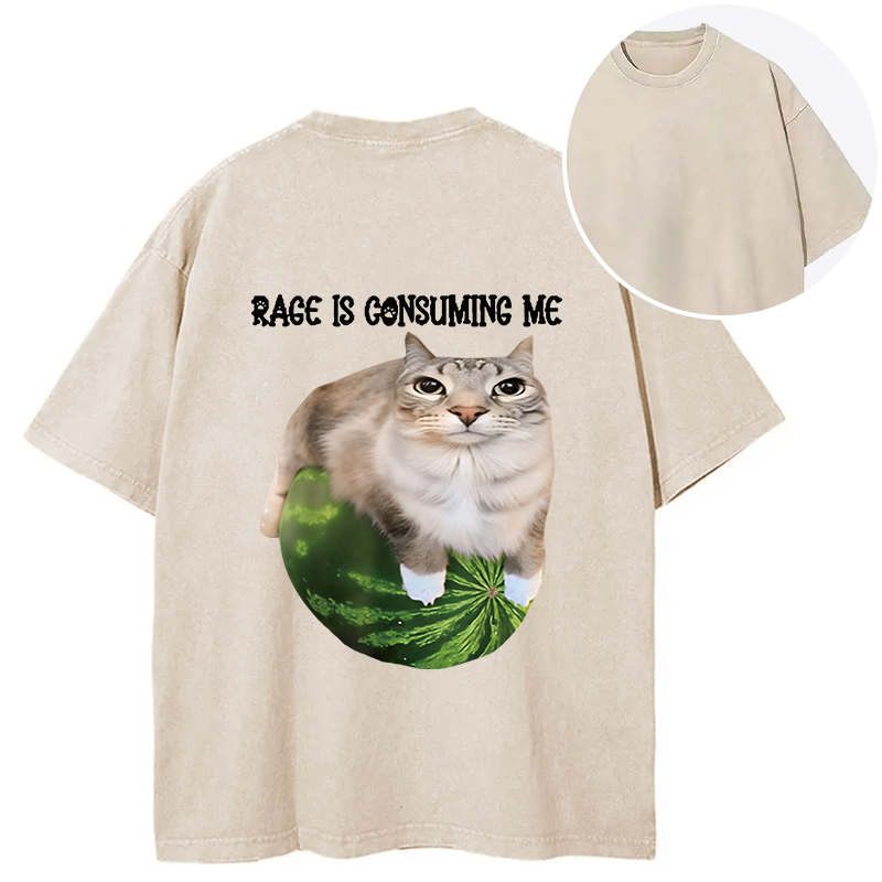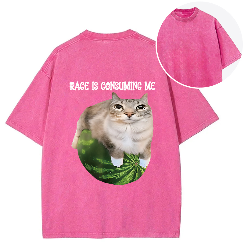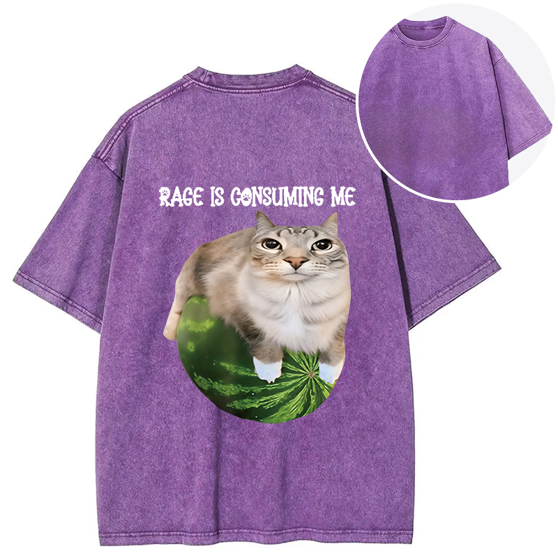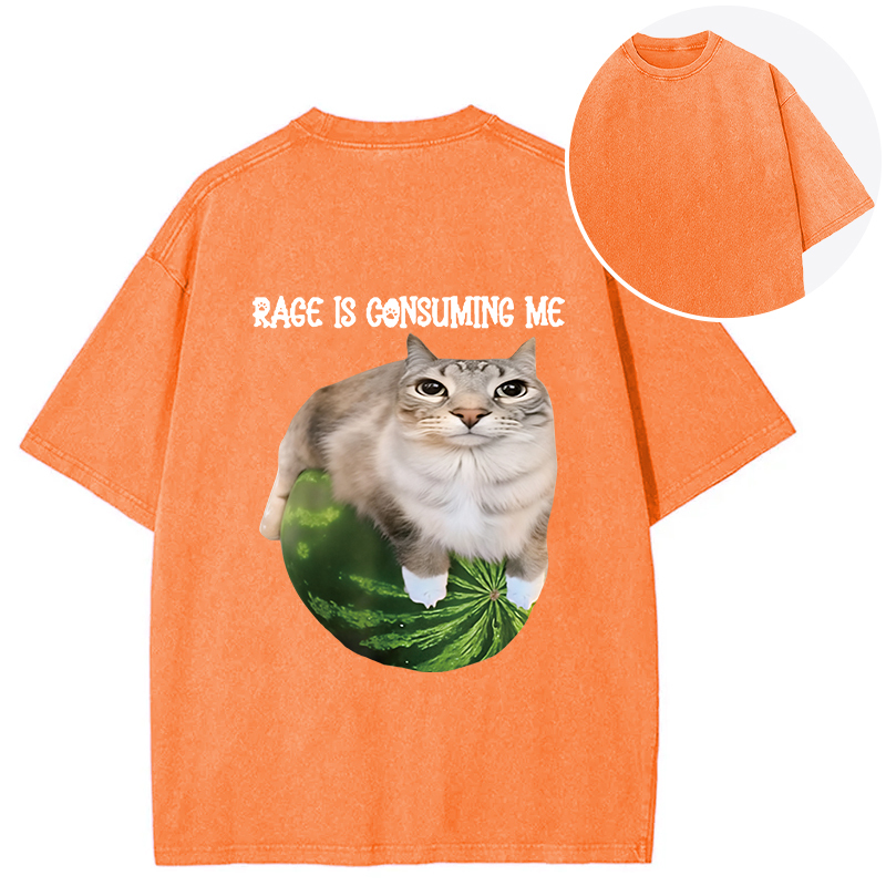 Rage Is Consuming Me Cat Meme Back Washed T-Shirt