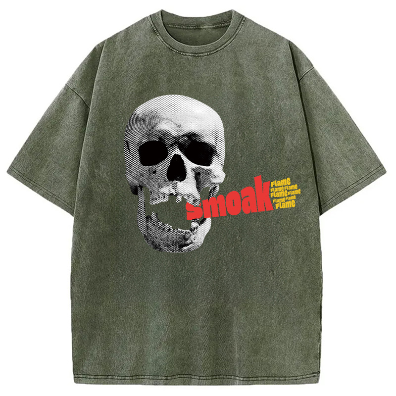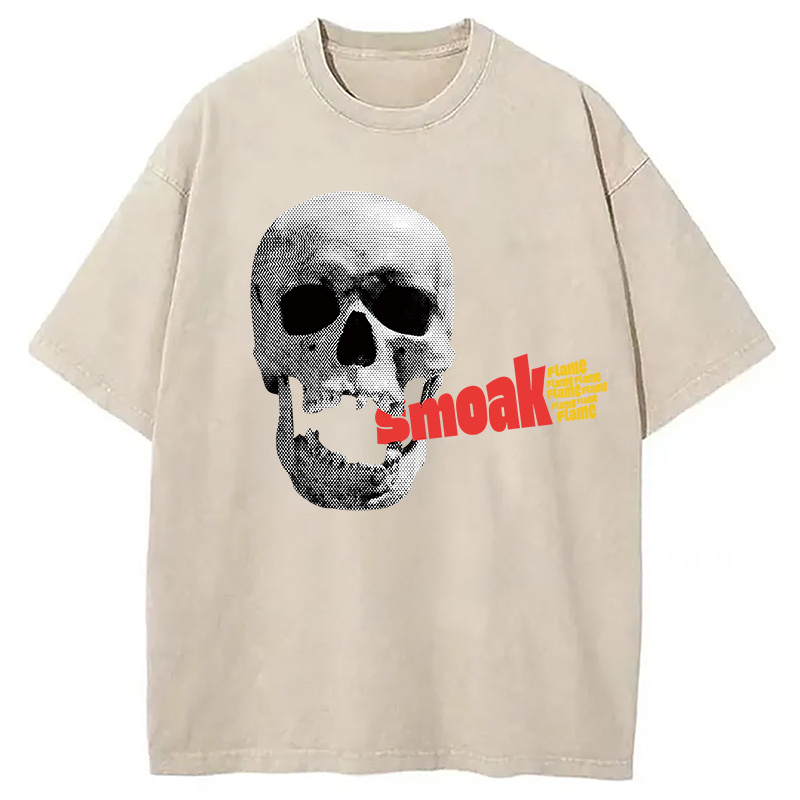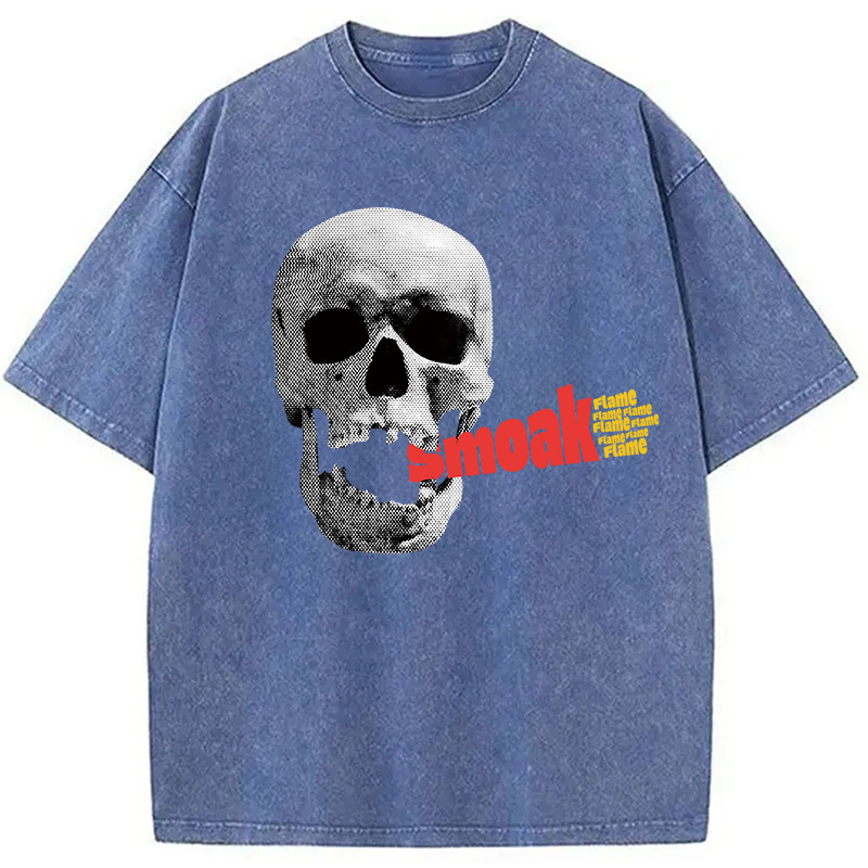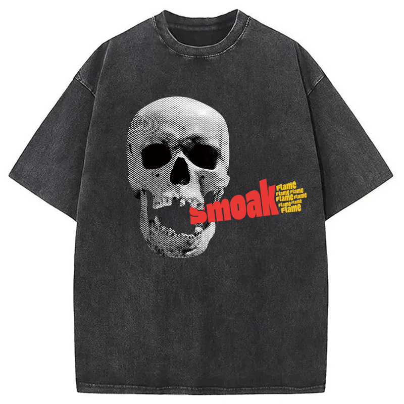 Smoke Flame Hiphop Washed T-Shirt