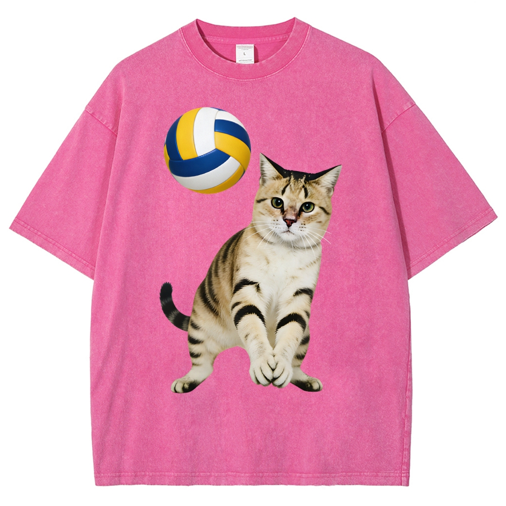 Volleyball Player Cat Unisex Fit Washed T-Shirt